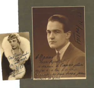Béatrice Bretty (grande photo dédic.), Pierre Fresnay (grande photo dédic.), Jacques Grétillat (grande photo dédic.), Irma Grignon-Faintrenie, Marguerite Moreno (2), Roger Monteaux (photo dédic.), Mary Marquet (6, et photo dédic.), Madeleine Roch (2), Jules Truffier (8), Charles Vanel…