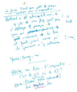 François TRUFFAUT. Manuscrit autographe, [1984] ; 1 page et demie in-4 à l’encre turquoise, avec ratures et corrections. Courte scène pour Vivement Dimanche : conversation entre trois personnages (Bertrand, Yann et la dame) qui préparent...