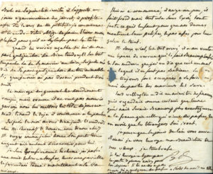Il a reçu avec plaisir de ses nouvelles de Lyon, « car quand on a en routte des chiennes et des nieces on ne saurait avoir trop de souci pour de si chanceuses marchandises »... Il raconte une aventure concernant sa chienne Ida : « L’autre jour en passant dans la rue de Melle Templier j’attrapai un conducteur de cabriolet qui avait empoigné Ida et qui la portait dans sa voiture. Je pris son numero et jecrivis au prefet de police, qui le fit empoigner a son tour et mettre en prison ou il est encor aujourd’hui sa femme est venue se mettre a mes genoux et apres l’avoir bien grondée, j’ai consenti qu’on ne donne pas de suitte a cette affaire »… Il parle avec humour de son frère Scipion, qui « s’apprete a jouer vigoureusement du jarret » au bal de Mme de Villeplaine, et qui lui a rapporté quelque chose de si aimable de la part d’Agathe, qu’il n’en a pas dormi pendant trois nuits. Il donne des nouvelles de quelques amis : le général qui ne veut pas mourir garçon, MM. Revenaz, Vergèz, Roux Vital, etc. « Lord Wellington a dit au ministre des finances quil regardait comme certain que l’annee qui nait serait beaucoup plus avantageuse a la France que celle qui vient de passer, et on croit que les étrangers s’en iront. Je pense que le jour de l’an vous aura réuni je vous envoye ma benediction et mes vœux »…