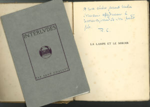 Interludes (Sous l’enseigne du Pavillon dans un parc & chez H. Baguenier Desormeaux, 1912) ; in-8. Édition originale tirée à 99 exemplaires. 2 exemplaires brochés : n° B sur Chine (non mentionné au justificatif) ; n° 98 sur vergé.