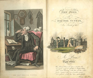 par Thomas Rowlandson, plusieurs planches portant la date de publication (1816 ou 1819) et le nom de l’éditeur : R. Ackermann’s Respository of Arts.
