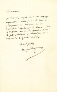 Théophile GAUTIER (1811-1872). L.A.S., [à Delphine de Girardin] ; ¾ page in-8. « Je suis aux regrets de m’être engagé aujourd’hui mais j’irai le soir et j’assisterai au banquet du feu d’artifice d’esprit qui se tirera après le...