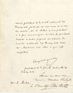 s’est retiré et qui reste constituée ». Note a.s. d’Aimé Millet en bas de page : « Souvenir en mon nom donné à M. Chalupt ».