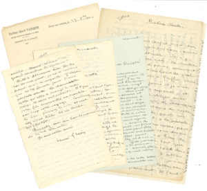 1895. Il remercie Ducoté et L’Ermitage de lui avoir « ouvert ses portes » en publiant son « étude sur Griffin »... 1897. Il a reçu les livres de Ducoté, et en fait une étude critique très élogieuse. 1898. Il le remercie de l’envoi de son manuscrit Calypso et explique ce qu’il aime dans cette œuvre : « Votre tragédie n’est pas à proprement parler une œuvre de théâtre mais un traité comme ceux de Gide, sous une forme dialoguée plus continue »... 1899. Organisation d’une rencontre en Normandie : « Ma mère et ma sœur se réjouissent de passer la journée avec votre charmante femme[...] Je reçois en même temps une lettre de Gide qui me dit que sa femme ne peut songer à nous rencontrer à Cabourg. Mais il ajoute [...] qu’il prendra peut-être un de ces jours sa bicyclette pour venir vous surprendre avec son beau-frère et qu’il me télégraphiera pour que je le rejoigne chez vous [...] Nous prendrons le train de 10 h.8 à Trouville et nous serons à 11 h.30 à votre Bretèche »... 1900. Nouvelles de ses travaux d’écriture, des amis qui l’entourent, des difficultés de Paul Fort pour se faire éditer, et du voyage avec Gide en Algérie (une à en-tête du Grand Hôtel à Constantine). 1901. Il s’installe à Bray-sur-Seine comme médecin de campagne ; il visite ses malades à bord d’une voiturette. Il continue son travail littéraire : « une longue chronique où j’avais entrepris de juger Wagner », et « l’eau de vie qui à nouveau distille ». Il veille à ce que la revue ne manque pas de matériaux à imprimer. Il donne des nouvelles des amis qui viennent le voir, qu’il préfère à ses connaissances de Bray... 1902. Il évoque l’enquête de l’Ermitage auprès de deux cents personnalités littéraires, sur la question : quel est le plus grand poète au XlXe siècle. Il déplore les difficultés de Ducoté à produire sa pièce et donne des nouvelles de sa propre production. 1903. « J’ai l’espoir de réintégrer Paris cet hiver [...] Que n’ai-je Paris sous la main et la plupart de mon temps libre. Cela viendra »... 1904. Il est encore à Bray. C’est peut-être la dernière année de parution de l’Ermitage et les derniers poèmes et chroniques qu’il envoie. 1905. Il déplore : « l’intrusion des Van Bever, Léautaud dans l’Ermitage est une triste chose ! Le prochain numéro comporterait-il cinq pages de mes vers ? En tout cas je vous les envoie »… « Je déplore la perte de l’Ermitage [...] Il aurait fallu produire davantage pour occuper la place. La place a été prise, tant pis »... 1908. 2 janvier : « Vous savez que je deviens peintre : j’expose aux Indépendants, sans préjudice de la littérature : un demi roman scandaleux dont la seconde moitié s’active »... 1911. « J’ai usé mes vacances entre les affaires de ma sœur [..].et les répétitions du Pain qui m’absorbent entièrement depuis deux semaines [...] Le surmenage d’un genre nouveau m’éberlue [...] Après plusieurs essais je tiens enfin mon Pierre Franc : Karl, le Dimitri des Karamazov »... 1912. Il raconte la mort accidentelle de sa mère. 1913. C’est maintenant Ducoté qui propose son livre pour une chronique dans un numéro de la NRF. « Dès le retour de Gide je poserai la question de votre livre [...] sans engager encore la revue »... 1915. 10 janvier (sur carte postale militaire), il envoie ses vœux aux Ducoté et son adresse au front, il est « aide major 29e Artillerie » : « Je ne regrette pas mon voyage je vis dangereusement (pas trop, mais un peu) et gaiement ». 13 avril, il raconte son expérience de médecin engagé sur le front de la Somme (qui contribuera à sa conversion) : « On vit au front sous “le fatum” il frappe un peu plus souvent voilà tout mais la “grâce” aussi a les siens c’est dans cet espoir qu’il faut vivre [...] On dit la fin de la guerre prochaine. Pourquoi ? Nous l’ignorons »… Etc.