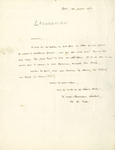 l’académie française », sa lettre étant arrivée trop tard. On joint un morceau de chemise ayant appartenu à Lacordaire (certifiée par le Prieur du Saulchoir).