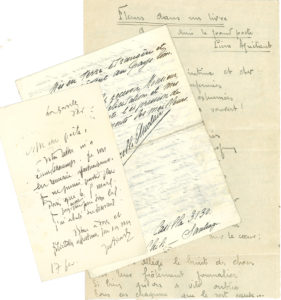 Alcanter de Brahm, René d’Alsace, Marcelle Auclair, Jean Aicard (5), Jean Bach-Sisley, René Bastien, Lya Berger, Émile Blémont, Auguste Boisard, Abel Bonnard, Pierre de Bouchaud (22), Émile Boutroux, Adolphe Brisson (7), Paul Brulat (5), Jane Catulle-Mendès, Henri Carnoy, André Chagny, Pierre Chaine, Jean Charles-Brun, Robert Chauvelot, Judith Cladel (4), Jules Claretie, Julia Daudet (48), Lucien Daudet (3), Lucie Delarue-Mardrus (8), Auguste Dorchain (16), Jean Dornis, Marie-Louise Dromart, Henry Dubessy (poème), Jean Dufourt (7), André Dumas, Armand Duréault (9), Paul Duvivier, Eugène Fasquelle, O.W. Firkins, Henri Focillon, M.E. Frandon (poèmes avec aquarelles), André Foulon de Vaulx (4), Auguste Garnier, Gustave Gasser, Fernand Gregh, Maurice Grivet-Richard (5), Suzette Guillaud, Guillot de Saix, Pierre Halary, Edmond Haraucourt, Paul Harel, Myriam Harry (5), Eugène Hollande (8), Léon Lahovary (22, plus 2 tapuscrits corrigés), Blanche Lamontagne-Beauregard, Camille Latreille, Robert de La Villehervé, Gustave Le Bon, Georges Lecomte, Eugène Le Mouël, Camille Le Senne, Jules Lévy, Joseph Lhopital, Roland de Marès, Victor Margueritte, Victor-Émile Michelet, Pol Neveux, Anna de Noailles, Georges Normandy (31, plus 2 photos dédic.), Jean Nouaillac (8), Martial Paufique, Achille Paysant (16), Cécile Périn, Gaston Picard, Charles de Pomairols (5), Ernest Prévost, Henri de Régnier, duchesse de Rohan, J.H. Rosny aîné, Maurice Rostand, Joseph Serre, Marcelle Tinayre (3), Hélène Vacaresco (80), Benjamin Vallotton (14), J. Valmy-Baysse, Jean Vermorel (5), Marie-Louise Vignon, René Violaines, Claire Virenque (8), Gérard Walch (8, plus le projet de l’article sur Aguétant dans son Anthologie des poètes contemporains), Colette Yver, Léontine Zanta, etc.