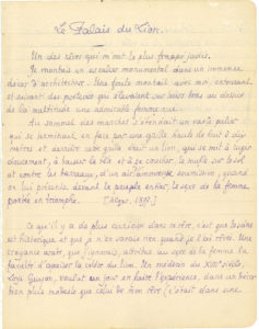 Pierre LOUŸS (1870-1925). Manuscrit autographe, Le Palais du Lion, 1897 ; 1 page et demie petit in-4 sur un feuillet ligné venant d’un cahier. Récit et commentaire d’un rêve, fait à Alger en 1897. « Un des rêves qui m’ont le plus...