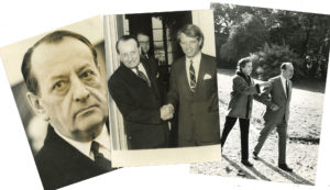 [André MALRAUX (1901-1976).] 17 photographies de presse ; formats in-8. Bel ensemble, montrant Malraux admirant des œuvres d’art ; en compagnie de Bob Kennedy, de Michèle Morgan, de Charles Munch, de Louise de Vilmorin ; dans des...