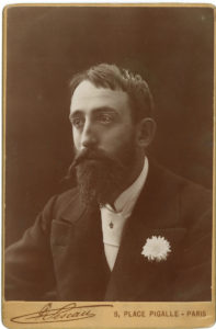 Jehan RICTUS. Poème autographe signé « Gabriel Randon », « Pour Nathalie Kieffer-Gillet » ; 1 page in-8, au dos de son portrait photographique cartonné. Au dos de sa photographie par Paul Sescau, 4 quatrains :