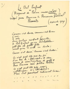 « fragment » que Rictus a recopié avec soin pour le procureur général Pressard est accompagné d’une lettre, pour remercier le procureur de son intervention en faveur de Rictus auprès du Ministre... qui double sa pension... « Comme c’est doux, comme c’est beau / à voir, / le soir, / dans quelque modeste famille, / le Bel-Enfant qu’on déshabille »…