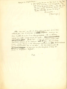 marquant d’un trait de crayon celles qui te plaisent le plus, et les lire non pas en ouvrant le livre au hazard, mais d’un bout à l’autre »… – Court « chapitre dernier », portant en exergue un extrait de Dominique de Fromentin. C’est une scène d’adieux, avec ratures et corrections : « J’irai m’enterrer quelque part. Sans doute trouverai-je la route qui va vers Dieu. Elle peut naître de moi. Chaque homme a la sienne propre qui le mène au but universel et qu’il devrait savoir lire en son cœur »… On joint 2 l.a.s. du jeune James Gulley à lui adressées, Londres 6 septembre 1927 (en anglais) et 31 juillet.