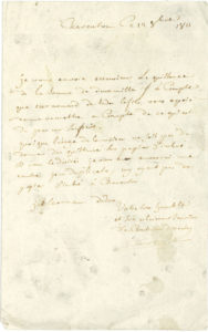 12 octobre 1811, à M. Corbin, avocat à Paris ; 1 page in-8, adresse (lég. salissures). Il envoie la quittance de la somme de 2000 francs « à compte que Mr Armand de SADE le fils vous a prié de me remettre à compte de ce qui est du par Mr son père »…
