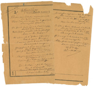 Paul VERLAINE. Poème autographe signé, À Raoul Ponchon (conseils dans sa manière), 16 novembre 1891 ; 2 pages in-8 sur papier administratif de l’Assistance publique (papier bruni et fragile, petite déchirure, lég. fentes réparées)....