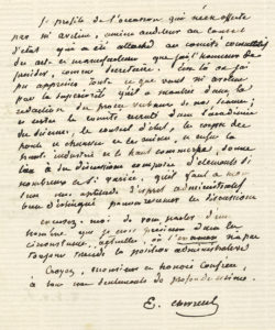 de mes travaux sur la raison de la nécessité d’un aliment complexe pour la diète de l’homme et des animaux supérieurs » ; puis il aborde « la question du matérialisme et du spiritualisme eu égard aux sciences physico-chimiques. Enfin les distractions sont terminées par quelques fait et anecdotes du Siège de Paris ». Il fait ensuite l’éloge de M. Aveline qui rédige les procès-verbaux des séances du Comité consultatif des Arts et Manufactures qu’il préside ; le comité « recruté dans l’académie des sciences, le conseil d’état, les corps des ponts et chaussées et les mines, et enfin la haute industrie et le haut commerce, donne lieu à la discussion exemplaire d’éléments si variés, qu’il faut à mon sens une aptitude d’esprit administratif bien distingué pour résumer la discussion »…