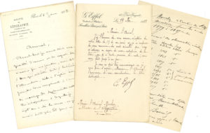 au cours de l’année 1889 (à l’exception d’une lettre de 1888 et une autre de 1890). Elles proviennent des lieux les plus divers : Paris, Versailles, Sèvres, Marseille, Cassis, Nice, Madrid, Rome, Bruxelles, Le Caire, Tananarive, La Plata, Poulkovo (Russie), etc. Parmi les sujets traités, on relève en premier lieu, bien sûr, l’astronomie : parution d’un éloge de la Photographie astronomique de Mouchez (1887) ; détermination de l’heure par l’observatoire de Lyon ; construction de la tour de l’Institut central météorologique de Madrid ; observation d’une étoile à l’observatoire de Liège ; publication d’un article sur les distances lunaires ; contribution de la province de Buenos Aires au projet de Carte du ciel ; nominations d’Henri Perrotin et d’Albert Obrecht aux observatoires de Nice et de Santiago du Chili ; reproches adressés par Mouchez à un astronome ; observations astronomiques effectuées à Madagascar ; envoi d’un planisphère céleste et d’une boussole coréenne à l’Observatoire ; controverse avec Henri Poincaré au sujet des satellites de Mars ; inauguration de la statue de Le Verrier ; installation d’une lunette astronomique à la Tour Eiffel ; démarches de Camille Flammarion pour faire venir un jeune astronome à Juvisy ; observations effectuées par Auguste Fraissinet à l’Observatoire ; essais astrophotographiques effectués à l’observatoire de Stockholm par Hugo Gylden ; méthode de Maurice Loewy pour effectuer de nouvelles observations ; visite de Mouchez à l’observatoire de Nice, où on doit construire un équatorial coudé ; observation de la comète de Brooks par James Tennant ; conférences de Julien Thoulet à l’observatoire de Montsouris ; observation de la comète de Faye à l’observatoire d’Alger, etc. D’autres questions sont évoquées : remise au net des instructions nautiques concernant La Plata ; construction d’un port d’embarquement à Benevente, au Brésil ; exploration du bassin de l’Omo (Éthiopie) par Jules Borelli ; préparation du congrès de Chronométrie ; installation d’un gyroscope sur un sous-marin ; demande de prêt d’un théodolite-boussole pour effectuer des observations magnétiques ; invitations et recommandations diverses... Astronomes : Antoine d’Abbadie ; Charles André ; Leo de Ball ; François Beuf ; Adolphe de Boé ; Alphonse Boinot ; Hyacinthe Bruguière ; Octave Callandreau ; Élie Colin ; Edmond Dubois (5) ; Charles Dufour (2) ; Hervé Faye (2) ; Camille Flammarion (3) ; François Folie (2) ; Auguste Fraissinet (9) ; Hugo Gylden ; Gustave Leveau ; Maurice Loewy ; Adam Ostoia-Ostaszewski ; Henri Perrotin (3) ; Otto Wilhelm von Struve (4) ; James Francis Tennant ; Charles Trépied (3) ; Charles Wolf.Météorologues : Augusto Arcimis ; Léon Teisserenc de Bort (2). Géographes : Henri Duveyrier (4) ; Charles Maunoir. Physicien : Hippolyte Fizeau. Explorateurs : Jules Borelli ; Henri Coudreau. Médecins et naturalistes : Benjamin Milliot ; Armand de Quatrefages ; Félix de Ranse ; Julien Thoulet (3).Marins : Armand Banaré (2) ; Octave de Bernardières ; Lucien Berryer (2) ; Gustave Besnard ; Édouard Caspari ; Georges Cloué ; Georges Fleuriais (2) ; Charles Eugène Galiber ; Ernest de Jonquières ; Edmond Jurien de La Gravière ; Henri de Kerillis ; Jules Krantz Auguste Massenet (4) ; François Edmond Pâris ; Charles Regnault de Prémesnil ; Albert Riondel (9) ; Antoine Schwerer (2) ; Émile Zédé. Personnalités diverses : Raphaël Bischoffsheim (banquier) ; Georges Borelli (frère de Jules) ; Champigneulle (peintre verrier) ; Victor Collin de Plancy (2) ; Émile Decauville ; Edmond Dupain (peintre) ; Gustave Eiffel (2) ; Léon Lalanne ; Charles Lefebvre de Bécourt (4) ; Louis Liard (2) ; Lucien Magne (3) ; Bartolomé Mitre ; Ernest Maindron ; René Panhard (2) ; Édouard Viviani (4), etc.
