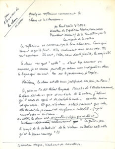Paul-Émile VICTOR (1907-1995) explorateur polaire. Manuscrit autographe signé comme « Directeur des Expéditions Polaires Françaises, Président exécutif de la Fondation pour la Sauvegarde de la Nature », Quelques réflexions concernant la...