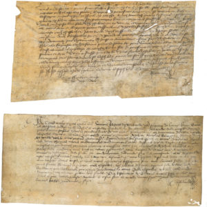 reçus signés, concernant notamment des personnalités de la noblesse ou de la bourgeoisie parisiennes : Guillaume d’Avesnes, sergent à cheval (1479), Jacques d’Estouteville, seigneur de Beynes, garde de la Prévôté (1487), Gabriel d’Alègre, garde de la Prévôté (1516), Jean Chauvet, prêtre en l’église Saint-Benoît (1535), Jehan Vincent de Gambecourte (signé Gambacor), gentilhomme napolitain (1556), Geoffroy L’Huillier, maître des comptes (1562), François d’Alesso, maître ordinaire en la Chambre des comptes (1584), Claude Parent, président de la Cour des monnaies (1585), Jacques de Bragelogne, maître ordinaire en la Chambre des comptes (1597), Jacques de Hylle, gentilhomme anglais (1616), Charles Le Tellier, sieur de Doizet (1624), Henri-Louis Habert de Montmort (1663), François du Vernet, valet de chambre ordinaire du Roi (1663), Charles Cartigny, écuyer, portemanteau du Roi (1666), etc. Notons encore l’inventaire de biens du maître ceinturier Guillaume Tellier (1561).