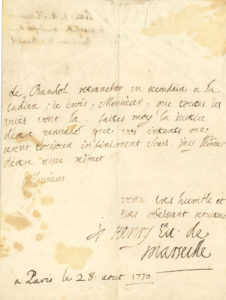 Henry de BELSUNCE (1671-1755) évêque de Marseille, il se montra d’un courage héroïque lors de la Grande Peste. L.A.S. « Henry Ev. de Marseille », Paris 28 août 1730 ; 2 pages in-4 (lég. taches). Au sujet de la paroisse de Bandol....