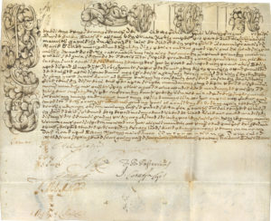 Dispense de mariage entre Charles Maurice Du Bouzet, Marquis de Poudenas, et demoiselle Jeanne Françoise Gillet de Lacaze. Signatures de F.B. Passerini, J. Caraffa, J. Sauze, etc.