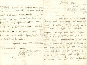 François-Antoine de BOISSY D’ANGLAS (1756-1826) homme politique. L.A.S., [Paris 16 mars 1816], à un « cher et digne compatriote » ; 4 pages in-8. Sur la fiscalité. Il dit, à propos de pétitions et de places à obtenir, ne plus avoir de...