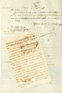 des Domaines et à un ministre ; 1 page et demie in-fol. et 1 page et demie in-8. À propos de la maison qu’elle occupe rue Cassette pour laquelle elle réclame des glaces, et le remboursement des travaux d’amélioration qu’elle y a effectués.
