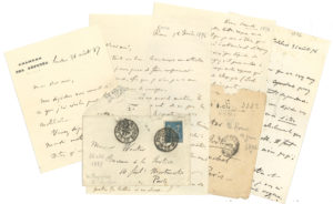 Justice, et sera son chef de cabinet. Les lettres sont écrites de Luchon, Rome, Carlsbad, Aunay-en-Bazois (château du Comte d’Aunay), ou de Paris. Elles donnent des instructions pour gérer ses affaires à Paris, ou accompagnent l’envoi de ses articles pour La Justice ou L’Aurore (comme Pierre et Paul ou L’enfer social), et se soucient des corrections des épreuves. Il fait aussi allusion aux affaires politiques, comme « la mobilisation » lors de l’incident Schnaebelé (1887), les affaires de la Chambre ou du Sénat, etc. On joint une L.A.S. à Mme Jeanne Guffroy (1902) ; 12 enveloppes autogr. à E. Winter ; 3 brouillons et fragments autographes.