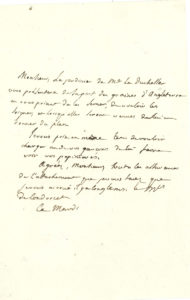 plantes pour la duchesse d’Enville. « Le jardinier de Me la Duchesse vous présentera de sa part des graines d’Angleterre en vous priant de les semer, de vouloir les soigner, et lorsqu’elles seront venues de lui en donner des plans. Je vous prie en même tems de vouloir charger un de vos garçons de lui faire voir vos pépinières »... [La Duchesse d’Enville (1716-1797), femme des Lumières, amie de Voltaire, Turgot et des physiocrates, tint un salon littéraire et accueillit Condorcet en son château de La Roche-Guyon].