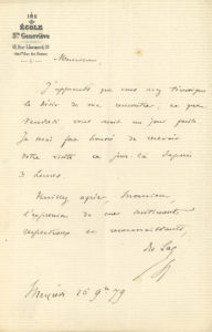 « ne peut continuer à servir efficacement notre cause qu’autant que l’alliance à laquelle vous ne vous refusez pas reste inconnue »… Il lui adresse deux brochures à signaler à ses lecteurs… Novembre-décembre, 3 lettres au sujet d’une rencontre à l’École Monge.