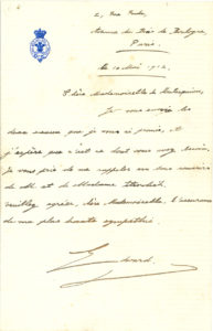 EDWARD VIII (1874-1972) Roi d’Angleterre. L.A.S., Paris 10 mai 1912, à Mlle de Montesquiou, à Paris ; 1 page in-8 à son blason couronné, enveloppe. Alors Prince de Galles, il envoie « les deux sceaux que je vous ai promis, et j’espère...