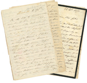 (Aude), substitut du procureur à Alger, volontaire au 108e régiment de ligne. Sa femme le suit en métropole, demeurant à Chambéry avec la femme de M. de Cléry, avocat général à Alger et volontaire dans le même régiment. Ses lettres expriment ses craintes, sa tendresse, sa foi, son émotion de le savoir blessé, sa fierté de le savoir décoré… Le Général Louis Maurandy écrit amicalement à Léopold, évoquant sa prise de commandement de la 2e division du 19e corps de la 2e armée, et le plaisir qu’il se promet « en vous priant d’accepter une des vieilles croix que j’ai portées en Crimée et ailleurs » (21 décembre 1870)… Il est question de la bataille de Champigny, du Général Trochu, de l’armistice et du Parlement à Bordeaux, mais aussi de mouvements dans la magistrature, de l’espoir d’une promotion et de leur retour en Algérie…