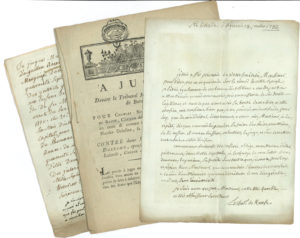 reçus du trésorier receveur de la communauté d’Aiguillon, lettres… On joint un petit ensemble de documents divers, dont le manuscrit d’une Histoire du costume illustré de dessins.
