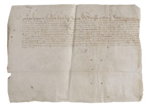 Bouillon, Vicomte de Turenne et de Langres, Maréchal de France, « et entre autres que lad. terre & subjetz d’icelle sont exempts de toutes tailles, subsides et impositions, lesquelz privileges auroient esté successivement confirmez par les feuz Roys noz predecesseurs de bonne et louable mémoire de regne en regne »… Pièce liassée avec deux autres lettres patentes confirmant ces privilèges (Blois 6 septembre 1599, et Paris 28 octobre 1599, cette dernière avec fragment de sceau). On joint un mandement au trésorier et receveur général des finances extraordinaires et parties casuelles, ordonnant de recevoir et endosser deux rescriptions du trésorier de l’Épargne, en attendant le prix d’offices nouvellement créés de « jaugeurs de vaisseaux a mettre vin et autres brevages », 20 juin 1596, signé par Martin Ruzé de Beaulieu.