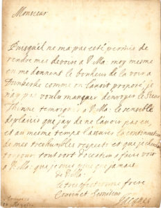 (brisés ; légère mouillure dans le bas de la lettre). Belle lettre comme Duc d’York, quinze ans avant son accession au trône d’Angleterre.« Puisqu’il ne ma pas esté permis de rendre mes devoirs à V. Ma. moy mesme en me donnant le bonheur de la voir a Dunkerke comme on l’avoit proposé, je n’ay pas voulu manquer d’envoyer le sieur Thinne temoigner a V. Ma. le sensible deplaisir que j’ay de ne l’avoir pas eu, et au mesme temps l’assurer la continuation de mes tres humbles respects »...
