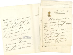 nomination n’ajoute rien à la valeur de M. Claude Bernard et l’échec ne diminue en rien le mérite de Gautier »… 17 août [1868]. « Je suis fort satisfaite des démonstrations publiques et françaises de ces derniers jours. La revue a été admirable […]. Je suis frappée malgré tout le mal que l’on cherche à faire de la persistance et la confiance publique dans l’Empereur »… 14 janvier [1869]. « Merci mille fois pour vos deux nouveaux volumes »… Salutations à Mme de Sacy, invitations…