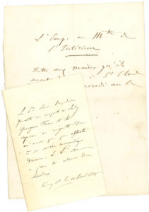 NAPOLÉON III. 2 L.A.S. (signées en tête), ; 1 page in-12 et demi-page in-8. [Londres], Kingstreet, 11 août 1848, à Lady Georgina Fane. Il regrette de ne pouvoir assister à sa soirée demain, étant absent de Londres. Dépêche : « L’Emp....