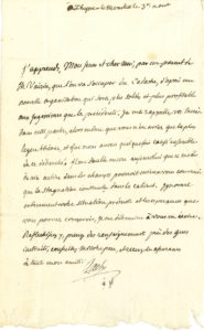 d’après une nouvelle organisation qui sera plus solide et plus profitable aux ingenieurs que la précédente. Je me rappelle vos succès dans cette partie, alors même que vous n’en aviez que la plus legere théorie […] Il me semble encore aujourd’hui que ce mode de vie active dans les champs pourroit mieux vous convenir que la stagnation continuelle dans le cabinet »… On joint une L.S. comme Maire de Paris relative aux émigrés, Paris 19 avril 1793.