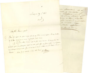 rousseurs et plis ; pour visiter une maison dans le Surrey). Alexandre de Laborde (à Mme Desloges, 3 p. in-8, adr., concernant le bail d’un appartement). Victor Moreau (New York 29 nov. 1808, à Mr Parish, ½ p. in-4, pour la transmission de ses courriers).