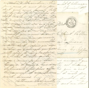 Saint-Vallier ; 12 pages in-8, enveloppes. Berlin 4 juin 1886. Son mari est malade : « les médecins ont décidé que nous devions aller passer l’hiver prochain au Caire ». Elle ne veut « pas quitter l’Europe sans dire adieu à tous nos amis de France »… 18 octobre 1886, quittant Paris : « Nous allons tout d’abord à Moscou, où je laisserai mon mari et mes enfants se reposer pendant que moi-même j’irai pour deux jours à Pétersbourg, y prendre congé de mon père dont la santé laisse malheureusement beaucoup à désirer. – Le 10 octobre nous nous embarquerons à Odessa, et s’il plaît à Dieu nous serons le 6 novembre à Alexandrie »… Le Caire 3 janvier 1887. Sur la santé de son mari, qui a fait une grave rechute : « Ah ! cet exil est bien pénible ! »… Saint-Petersbourg 29 décembre 1891 (« dernière lettre de la Prince sse »), sur la situation dramatique et la famine en Russie : « Des villages entiers meurent littéralement de faim malgré tous les efforts de la charité publique que l’on commence enfin à lasser par de perpétuelles demandes. Tout le monde quête tout le monde pour les affamés. Chez moi où la misère est noire, j’ai établi une cuisine gratuite où l’on distribue de la soupe aux indigents et cela ne marche pas trop mal, mais le pain nous manque absolument »...