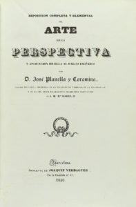 1840. LIBRO: .(ARTE). .PLANELLA Y COROMINA, JOSÉ: .ESPOSICIÓN COMPLETA Y ELEMENTAL DEL ARTE DE LA PERSEPECTIVA Y APLICACION DE ELLA AL PALCO ESCÉNICO. Barcelona: Imp. Joaquin Verdaguer, 1840. 8º mayor. 2 h. + 93 p. + 100 lám. Enc. en media piel,...