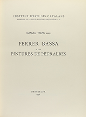 1936. LIBRO: .(ARTE). .TRENS, MANUEL: .FERRER BASSA I LES PINTURES DE PEDRALBES. Barcelona: Institut d´Estudis Catalans, 1936. Folio menor. 188 p.+ 4 h. CXXIV láminas. Enc. firmada por BRUGALLA, en media piel, nervios y corte superior dorado,...