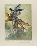 [1960]. GRABADO: .(ARTE-BIBLIOFILIA). .DANTE AGLHIGERI; DALÍ, SALVADOR: .LA DIVINA COMEDIA. Suite de 100 lám. Huella: 25, 5 x 18, 3 cm; papel con filigrana de B. F.H. Rives: 33 x 26,5 cm. Presentadas en paspartú de 43,5 x 33 cm y papel de hilo con...