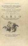 1758. LIBRO: (ARQUITECTURA). VITRUVIO POLLIONE, M.: L´ARCUITETTURA. Traducción italiana y comentarios de Berardo Galiani. Napoli: Nella Stamperia Simoniana, 1758. Folio mayor. Frontis grabado por F. la Marra y M. B. Galiani, 3 h. + XXXII + 462 p. +...