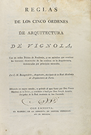 1792. LIBRO: (ARQUITECTURA). VIGNOLA: REGLAS DE LOS CINCO ÓRDENES DE ARQUITECTURA. Madrid: Imp. Manuel Gonzalez, 1792. 4º mayor. Frontis grabado (margen superior reconstruido) + 3 h. + 21 p. + 44 lám. + 1 plegada + de p. 23 a 42 p. (APÉNDICE) +...