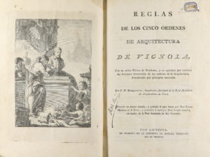 1792. LIBRO: (ARQUITECTURA). VIGNOLA, [GIACOMO BAROZZI]: REGLAS DE LOS CINCO ÓRDENES DE ARQUITECTURA. CON UN ORDEN DÓRICO DE POSIDONIA, Y UN APÉNDICE QUE CONTIENE LAS LECCIONES ELEMENTALES DE LAS SOMBRAS EN LA ARQUITECTURA, DEMOSTRADAS POR...