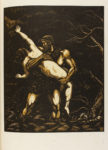 pergamino rígido. Ruedas en las cejas, hilos dorados en los planos y lomo, nervios, corte superior dorado, en petaca. Edición numerada de 300 ejemplares. Ex-libris.