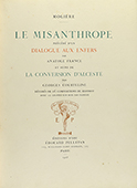 1907. LIBRO: (BIBLIOFILIA). MOLIÈRE: LE MISANTHROPE. PRÉCÉDÉ D´UN DIALOGUE AUX ENFERS PAR ANATOLE FRANCE ET SUIVI DE LA CONVERSION D´ALCESTE PAR GEORGES COURTELINE. Paris: Ed. d´art Édouard Pelletan, 1907. 4º mayor. XX p. + 2 h. + 177 p. + 7...
