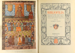 1911-1921. 2 vol. 4º mayor. I: 1 h.+ 666 columnas (y continua como paginación), páginas de 667 a 692 + 1 hoja. Profus. ilustr. dentro de texto y láminas fuera de texto, algunas en color. II: 3 h. + columnas de la 3 a 624, y p. de la 625 a 645. Igualmente con profusión de ilustr. y lám. Los dos volúmenes con sus cubiertas originales y con bella encuadernación de pergamino rígido con dos tejuelos en ambos volúmenes, cortes dorados. Perfecto estado de conservación. EJEMPLAR EN PAPEL JAPÓN. Uno de los rarísimos ejemplares sobre papel japón en un inmejorable estado de conservación. No más de 25 ejemplares fueron tirados en este papel superior, a su corto tiraje se une el hecho de estar impresos con un largo tiempo de diferencia. Probablemente la mejor publicación sobre libros antiguos catalanes, su impresión, grabados y encuadernaciones. Ejemplar procedente de la biblioteca particular de un importante encuadernador y bibliófilo madrileño.