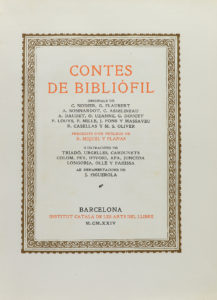 1924. LIBRO: (BIBLIOFILIA). MIQUEL Y PLANAS, R.: CONTES DE BIBLIÒFIL. Precedits d´un pròleg de Miquel y Planas. Barcelona: Ed. Institut Catalá de les Arts del Llibre, 1924. 4º menor. XLIII p. + 359 p. + 4 h. Texto orlado. Ilustr. con 40 grabados...