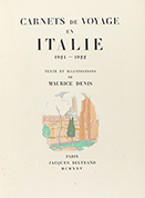 1925. LIBRO: (BIBLIOFILIA). DENIS, MAURICE: CARNETS DE VOYAGE EN ITALIE 1921-1922. Paris: Jacques Beltrand, 1925. 4º mayor. 2 h. + 83 p. + 2 h. Profus. ilustr. con dibujos del autor. Puntos de óxido. En rama, intonso, presentado en funda de...
