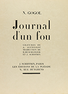 1927. LIBRO: (BIBLIOFILIA). GOGOL, N.: JOURNAL D´UN FOU. Paris: Ed. de la Pléiade, 1927. 4º menor. El ejemplar que presentamos está falto del primer pliego de texto, por lo tanto faltan las primeras 10 p., 129 p. + 2 h. Profus. ilustr. con lám....